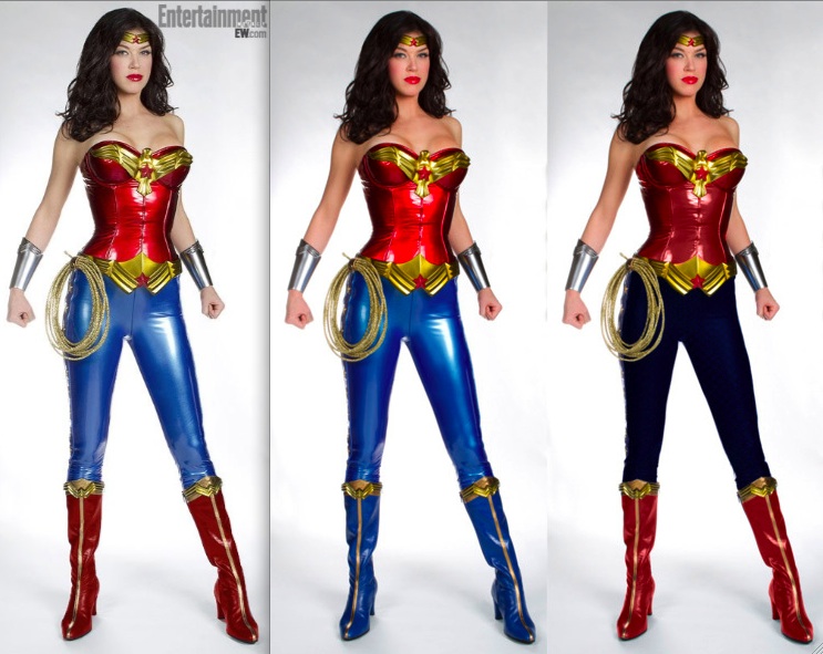 The middle image is still the official costume, unfortunately. Look how good the costume could have looked with some simple color swaps and muting the colors a bit. Still not great, but good.